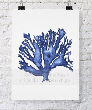Hamptons inspired coral artwork captured in delicate watercolour. The tone and texture of nature's seaweeds and corals depicted in painterly detail.