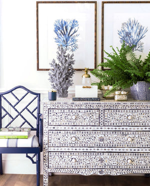 Create the perfect Hamptons/Coastal look yourself with these stunningcoral wall art prints. Part of a series of three, and framed in our signature faux bamboo or traditional timber, these hand-painted seaweed studies are printed and framed in Australia. Also available in Green.