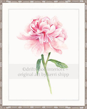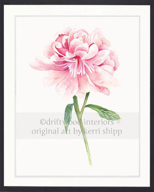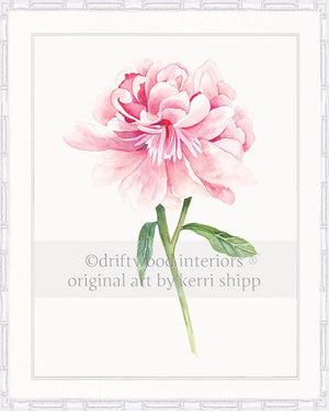 Peony wall art print in delicate pink by artist Kerri Shipp. One of two in the series, this new range of botanical wall art prints will add classic style to any home. Originally painted in watercolour, then Gicleé printed onto archival fine art paper, this print retains the incredible depth and detail of the original artwork.