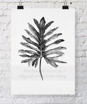This is a print of my original watercolour painting of a tropical leaf in charcoal, which was inspired by the natural beauty of my local area. Many of these plants grow along the banks of the creek that winds its way through our property. I never tire of collecting the foliage to use as the inspiration for my latest painting, and they add the perfect touch of tropical style to any interior.