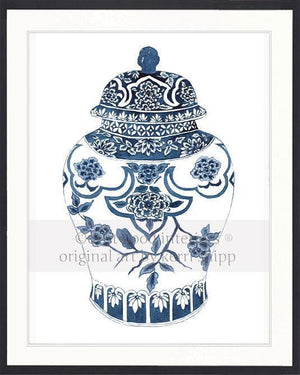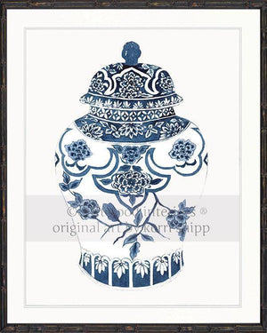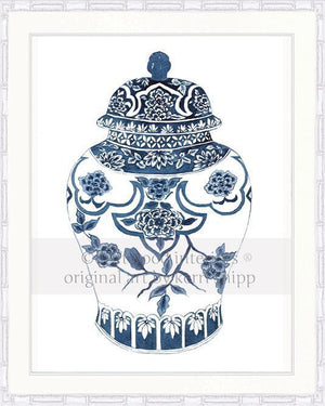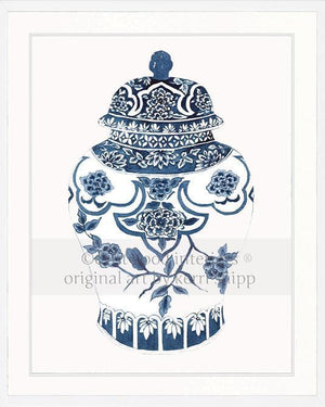 Classic and elegant, these Chinoiserie ginger jar artworks in indigo blue are the perfect accessories for any room. Also available in pale blue.