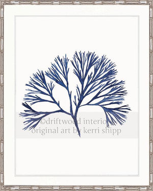 Coral and seaweed wall art prints in shades of denim blue are our signature series. Hand painted in watercolour, then giclée printed onto fine art paper, these prints blend stunning denims and indigo blues to create the perfect Coastal or Hamptons style interior.