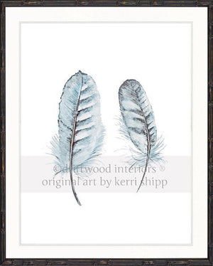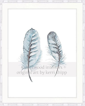 I often find feathers in the bush near my home. This watercolour wall art print of a feather in duck egg blue is a contemporary take on traditional collections of natural history.