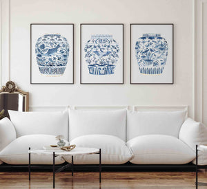 Set of 3 Wall Art Prints | Blue & White Ginger Jar Set | Driftwood Interiors