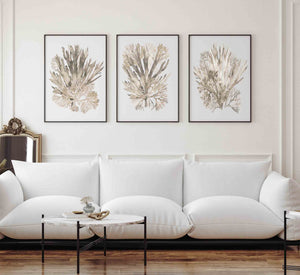Set of 3 Wall Art Prints | Seaweed Collage Set in Taupe | Driftwood Interiors