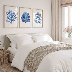 This Set of Coral Prints in classic navy blue is the perfect way to add timeless elegance to any interior. We've taken our signature coastal wall art and bundled it together, taking the guesswork out of choosing the perfect artwork. All you need to do is choose a size and you can be sure they'll work perfectly together. Easy. And you'll save as well - at 15% off the price of single prints!
